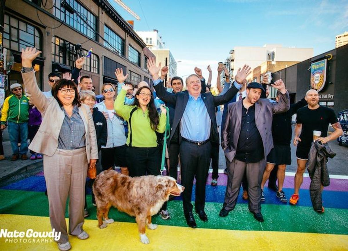 Ed Murray, Seattle's first openly gay mayor and a Capitol Hill resident, unveiled the neighborhood's new rainbow crosswalks as a bold symbol of the city's LGBT community.