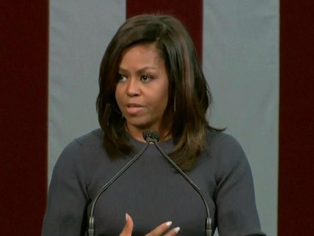 Michelle Obama denounced Trump and his horrible words against women while campaigning for Hillary Clinton in New Hampshire today, her voice trembling with emotion.