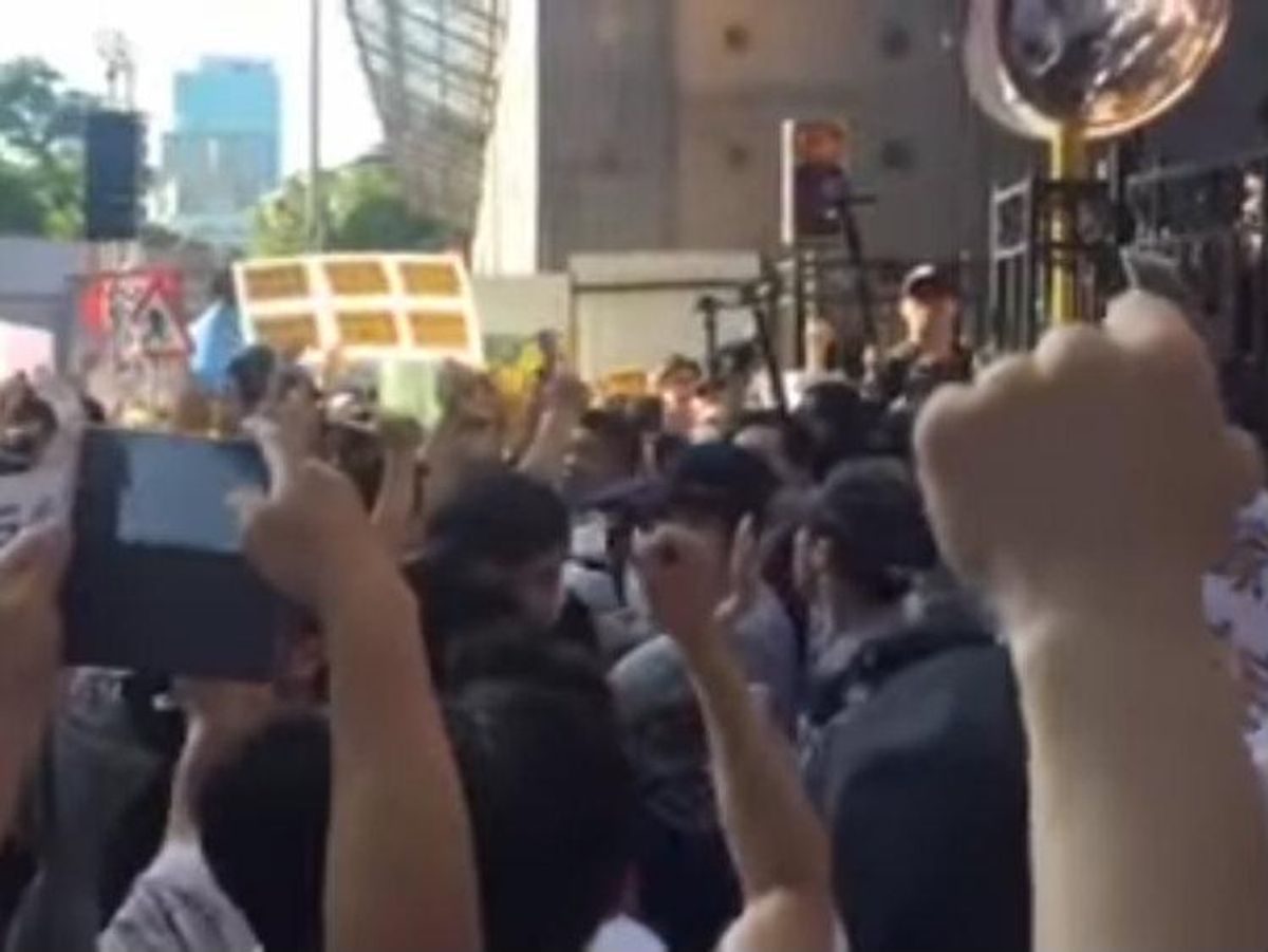 The Legislative Yuan building in Taiwan was surrounded with anti-gay marriage protesters yesterday as the office reviewed a bill that would legalize same-sex marriage.