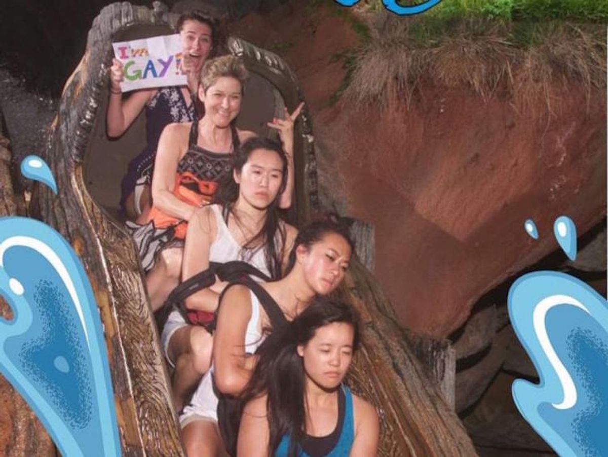 The plan was to make a sign that proclaimed simply, "I'm gay!" (Note the adorable rainbow exclamation point). She brought it with her on a trip with her mom to Disneyland and posed with the sign in one of those silly ride photos they do right before you take the big plunge.
