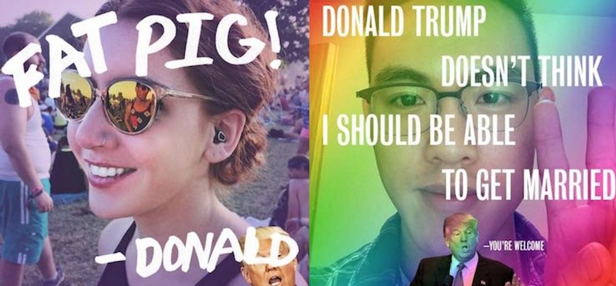 The Democratic nominee's online team has created a website, trumpyourself.org, that if you allow access to your Facebook, will pair your profile picture with Trump's worst quotes on women's rights, LGBT rights, and undocumented immigrants.