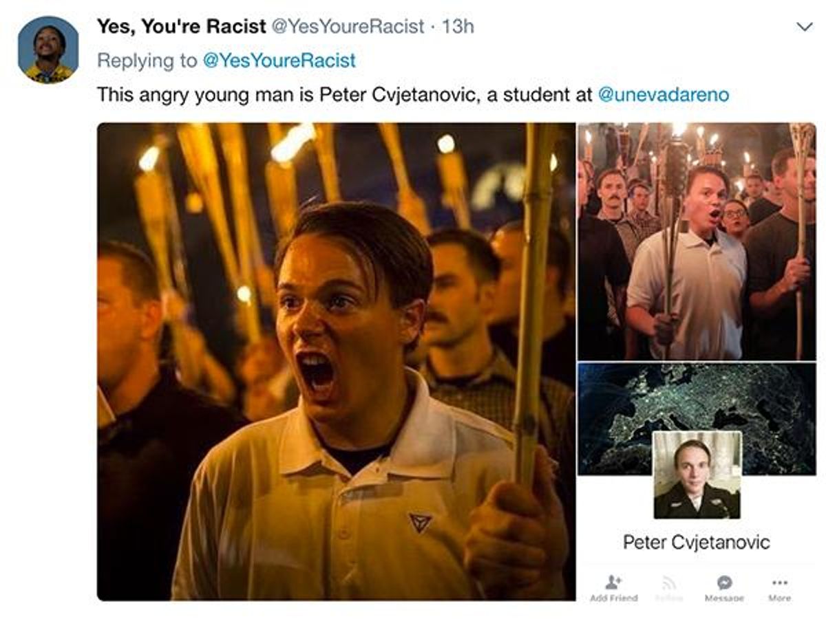 \u201cThis angry young man is Peter Cvjetanovic, a student at @unevadareno\u201d— Yes, You're Racist (@Yes, You're Racist) 1502556186