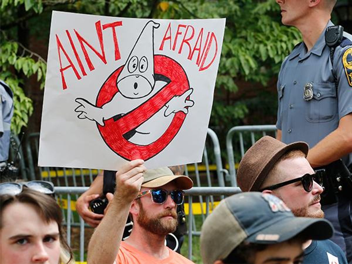 It's become clear that, as these violent white nationalists have become emboldened by Trump's presidency, we cannot look to the Commander in Chief to condemn them. Remember that these are the men who elected him, who knew that when he said "Make America Great Again," he meant "make American great again for white men."