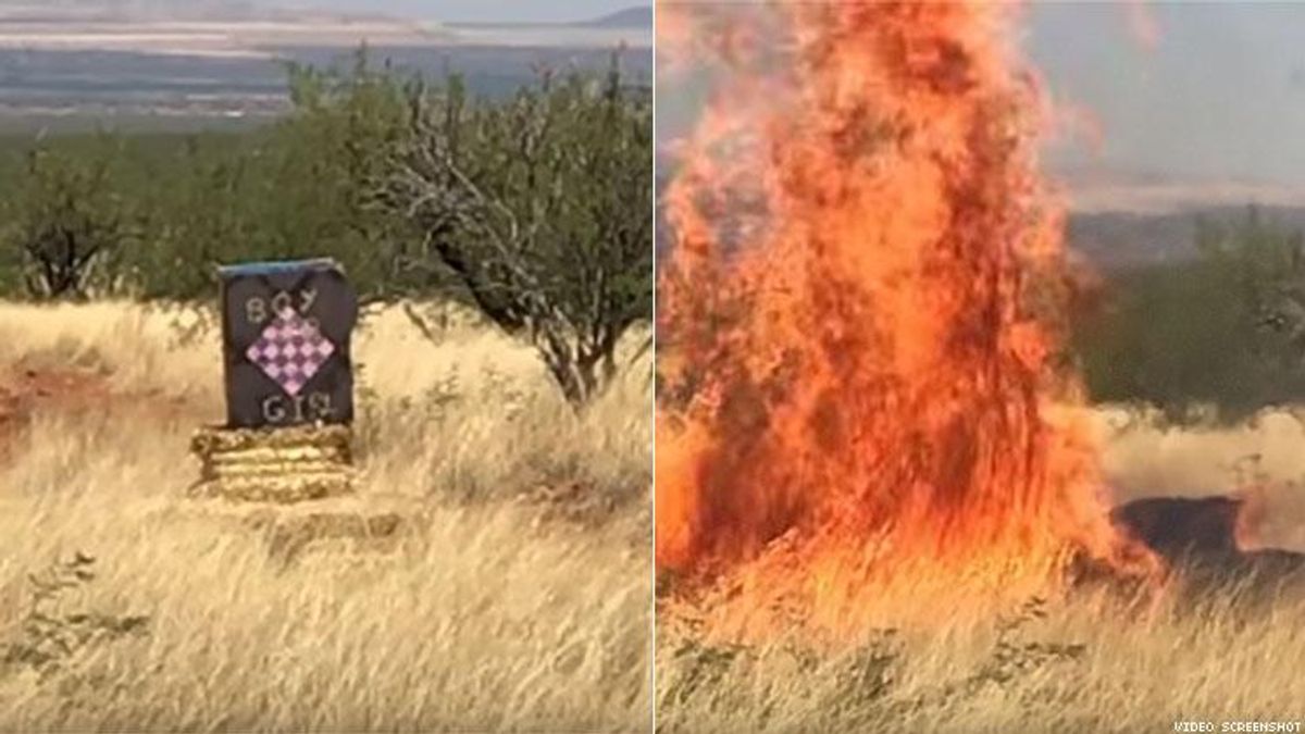 A 49-second video published by the Arizona Daily Star chronicles the incident, which occured in the Santa Rita Mountain foothills last April. The video shows a sign painted "Boy/Girl" sitting in the dry grass. It explodes, emitting a puff of blue smoke before setting the brush aflame. Officials later learned that the substance used to cause the blast was Tannerite, which detonates when shot with a firearm.