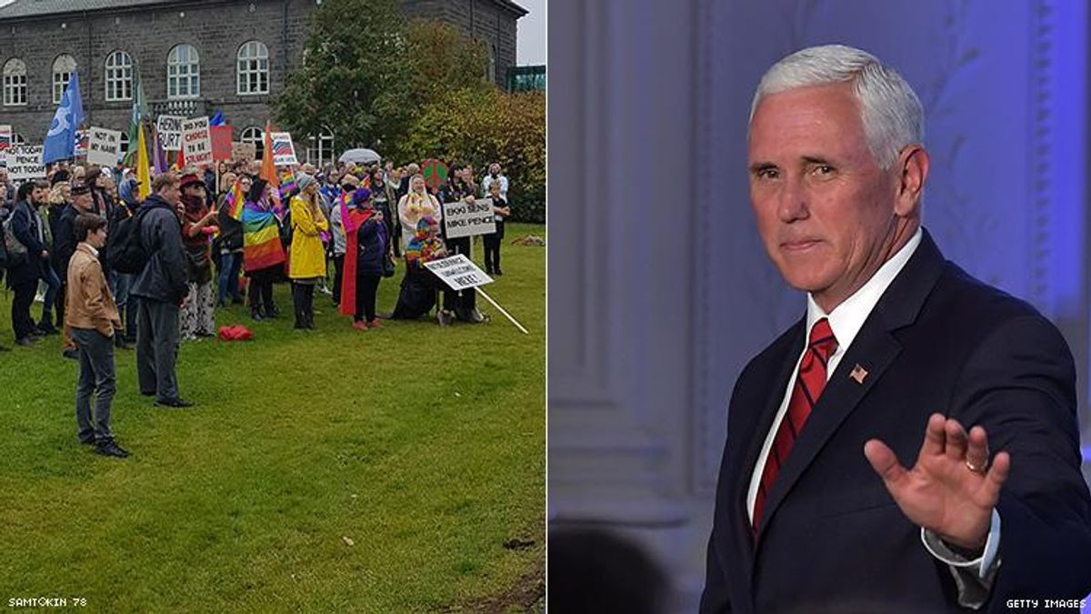 But for both of the activists present at the Wednesday rally, the demonstration was less about Iceland's LGBTQ+ community and more about the queer and transgender people impacted by Pence's politics. As the governor of Indiana, he signed a law in 2015 allowing people of faith to deny service to LGBTQ+ people on the basis of religion and has fought to pass a similar law since entering the White House in 2017.