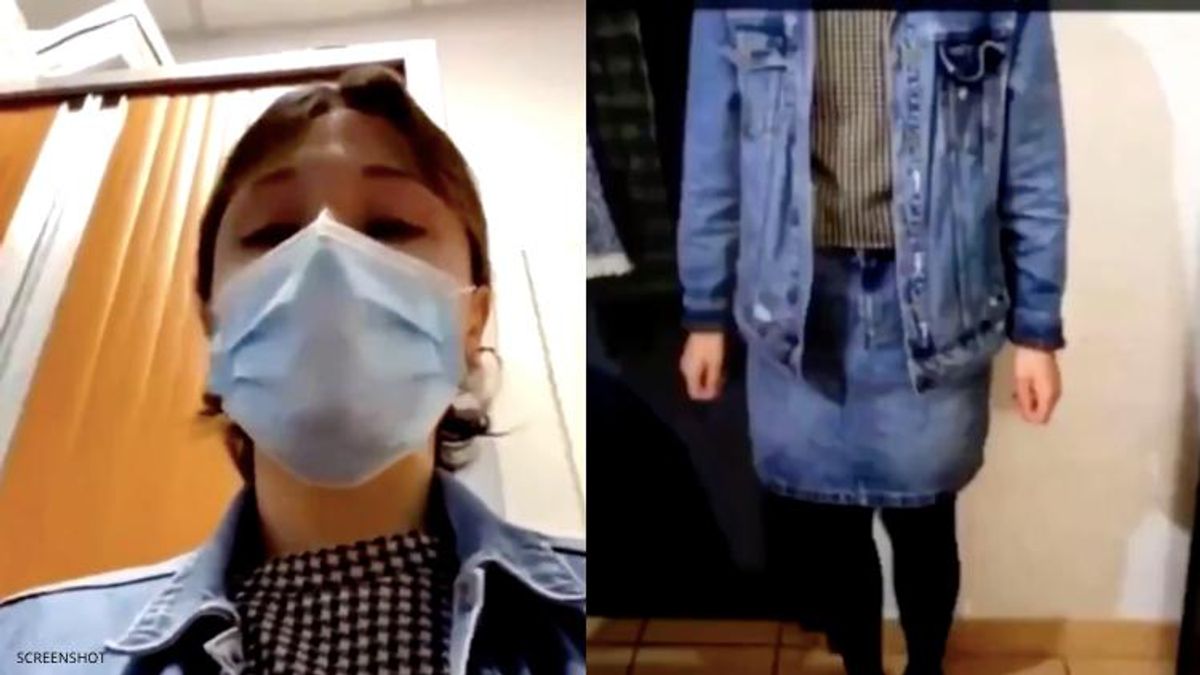 Toward the end of the video, she shows a picture of a modest jean skirt and black leggings with the caption, "This is what I was wearing."