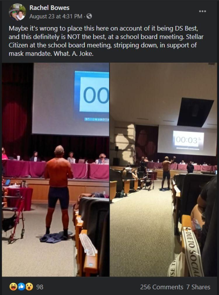 James Akers, who clearly doesn't miss leg day, was speaking at a board meeting of the Dripping Springs Independent School District on Monday about the district's optional face mask policy for children this year. Akers explained that every day we follow rules for the good of society and ourselves. To make his presentation more impactful, he then used his own body as a visual aid.