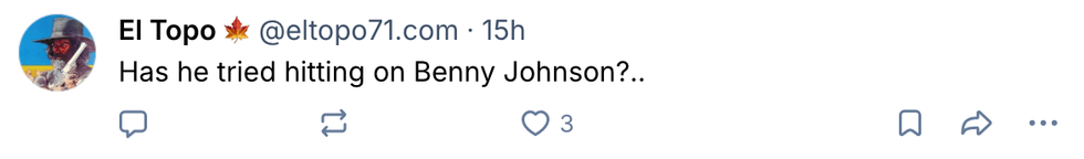 A Threads user named Steve Jones jokingly asked, “Gay Trumper now upset that other gay men don’t want to sleep with him…anyone want to join his class action lawsuit?” alongside a screenshot from Facebook’s “Conservative Gay Singles Group” showing someone who was asking members of the group if they “feel like suing the Dems for dividing gays?”