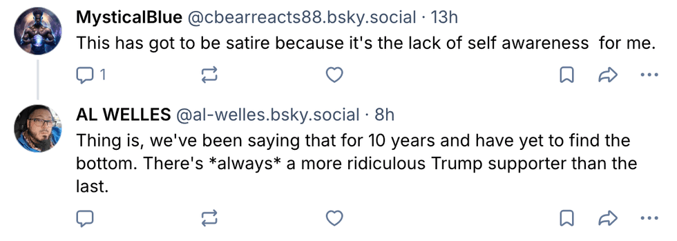 “I’ve lost family and friends from all their hateful dividing and constant trump basing .. it seems like a winning case to me,” the post reads, with no hint that the user sees the irony in calling gay men who don’t want to sleep with MAGA gays “hateful” and not Trump for his anti-LGBTQ+ policies.