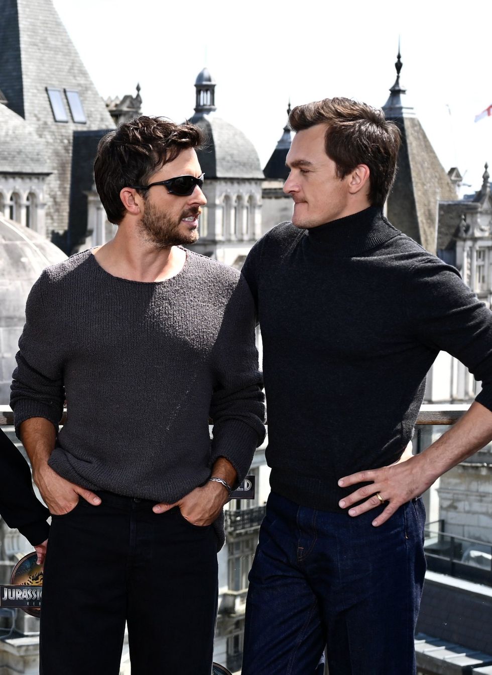 LONDON, ENGLAND - JUNE 16: (L-R) Jonathan Bailey and Rupert Friend attend the "Jurassic World Rebirth" photocall at The Corinthia Hotel on June 16, 2025 in London, England.