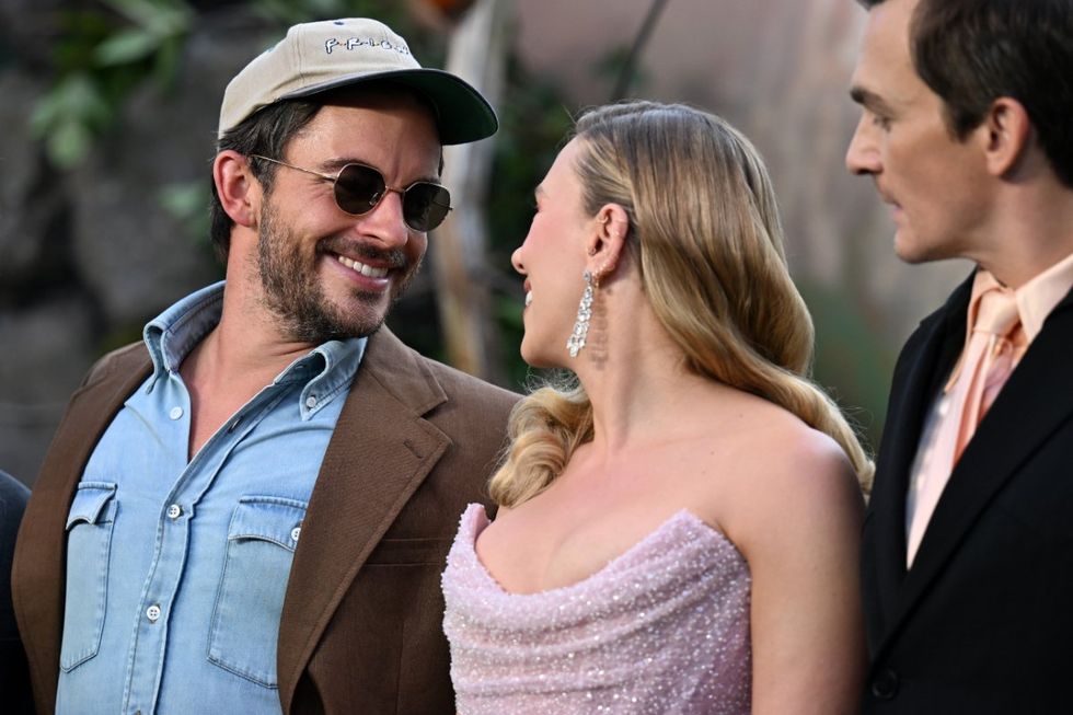LONDON, ENGLAND - JUNE 17: Jonathan Bailey, Scarlett Johansson and Rupert Friend attend the "Jurassic World Rebirth" World Premiere at the Odeon Luxe Leicester Square on June 17, 2025 in London, England.