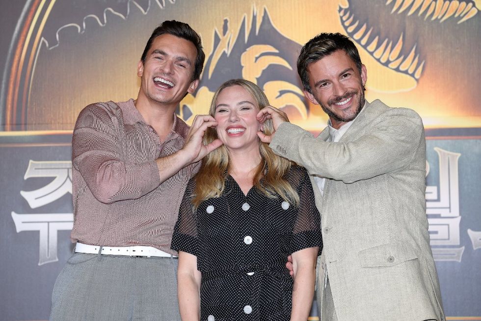 SEOUL, SOUTH KOREA - JULY 01: Actors Rupert Friend, Scarlett Johansson and Jonathan Bailey attend the "Jurassic World Rebirth" - Seoul press conference on July 01, 2025 in Seoul, South Korea.