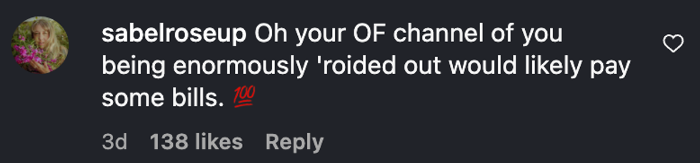 “Oh your OF channel of you being enormously ‘roided out would likely pay some bills,” said one fan amongst a sea of memes and gifs, and another fan emphatically noted he was “ONE OF THE HOTTEST MEN ALIVE THANK U UNIVERSE.”