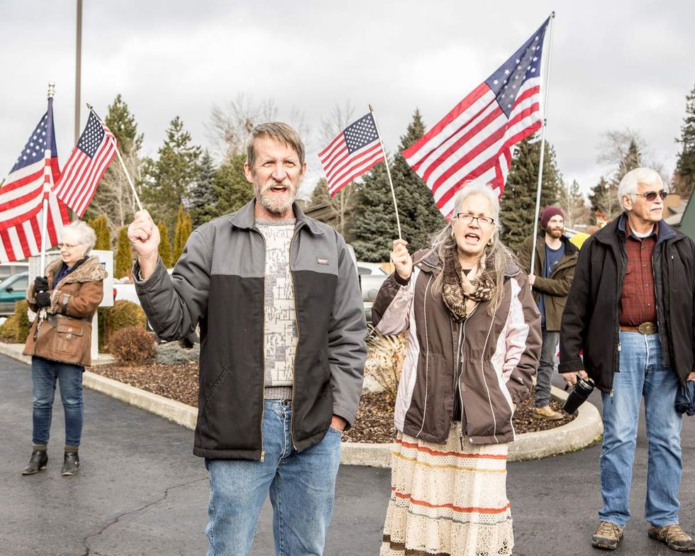 Anti-Trump protesters and Trump supporters at a 'No Kings' rally in Kyle, Texas