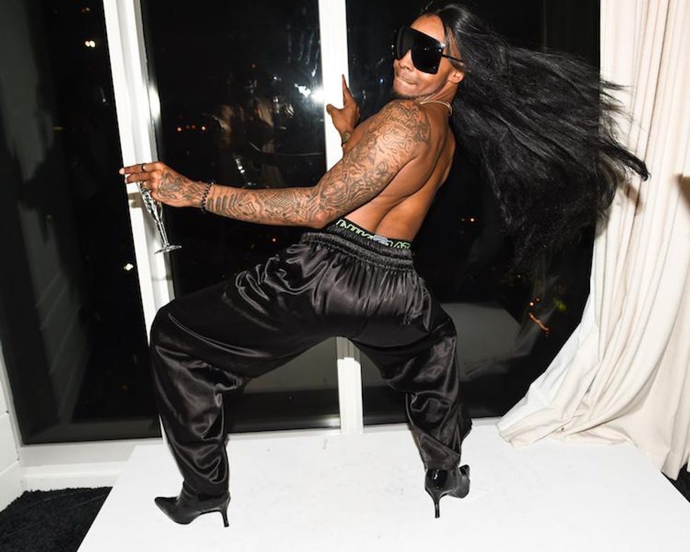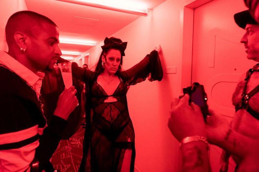Dating app Grindr and VisionaireWorld hosted SLUMBR, a black tie pajama party, in celebration of Pride. Post-parade, the event drew some of New York's finest, from A-list celebrities to fashion influencers, who all gathered in dress code --leather, lace, and satin were key that night-- at The Top of The Standard, The Standard hotel's rooftop bar, in the Meatpacking District.