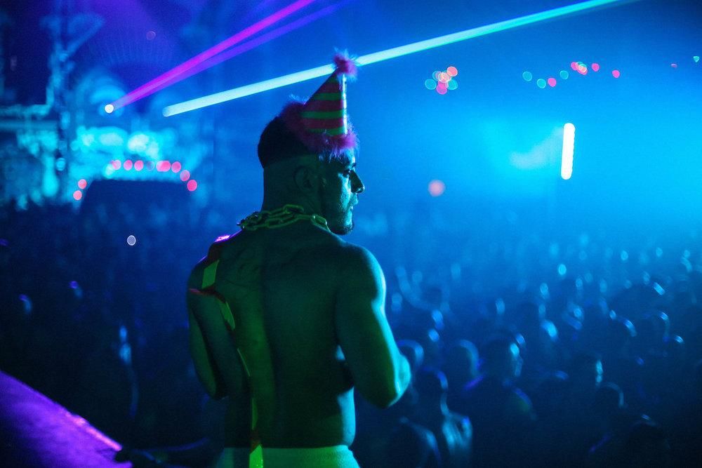 Like in Hay's book excerpt, that party has remained a bit of everything. There is the music and the dancing, that feeling of community, but there is also the sex and fetish. Porn stars perform on the mainstage and men are tied and whipped, -- some have been hung from hooks piercing their skin. It's an experience for all the senses. Themes have included "Mineshaft," which featured decor as if one were going down into a mineshaft for miners, a play on a now-defunct BDSM club; "Submerged," which brought the feeling of being underwater replete with decor that evoked a submarine' as well as "Pigtopia" which is ... self-explanatory.