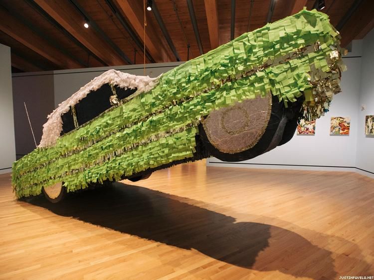 While initially hesitant to pursue an art form built around this mainstream symbol of Mexican culture, Favela has since embraced the technique, making everything from life-sized Chevy Impalas to the facades of motels. The sheer size of these pieces has grabbed the attention of many in the art community, impressed by the time-intensive skill required as well as the social messages within Favela's work.