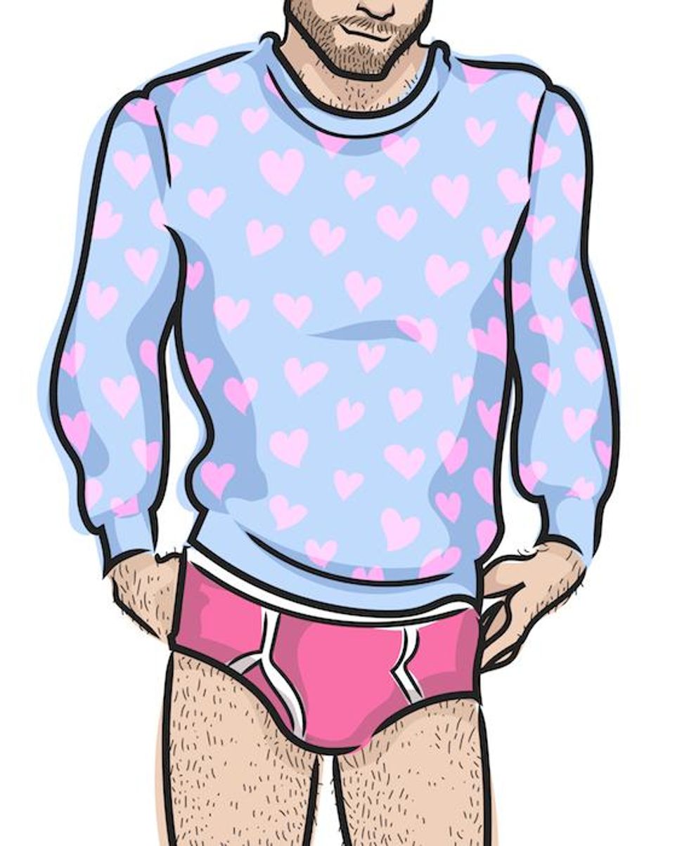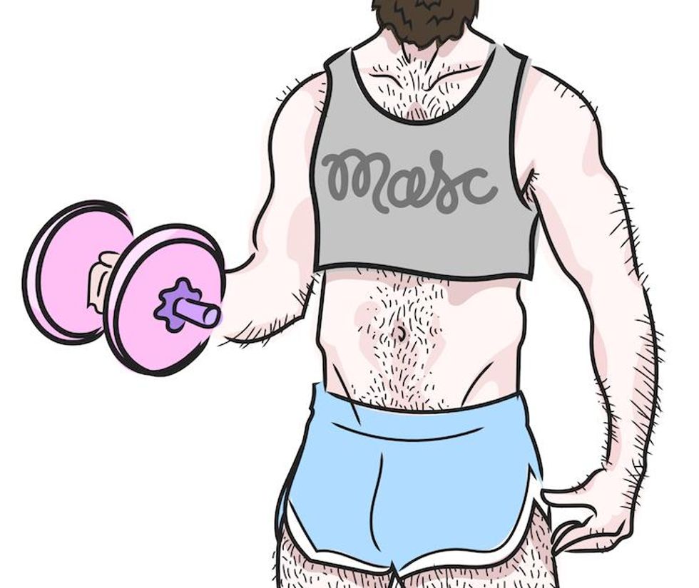 Are you masc? Fem? A wolf? A jock? Today, these Grindr-inspired gay subcategories matter, especially when it comes to who's coming home with you. Both fascinated and frustrated by this sex-hungry culture of labels, 25-year-old illustrator Andy Simmonds has found a way to subvert it, merging the masculine ideals so many gay men crave with the feminine pop that's likely tickled them since they played with their sisters' Barbies.