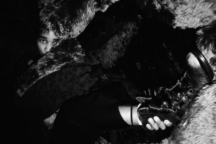 Squeezed into a prop-riddled balcony in Brooklyn's Spectrum dance club (or Dreamouse) on Wycoff Avenue, Jacolby Satterwhite is defying the laws of nature. Donned in vintage clothes that loosely hang on his nimble limbs, the artist is rapidly contorting his body into different pretzel-like poses, eventually holding one as he sinks into a pile of faux-fur pillows and garbage bags. While some might call it eccentric, the whole tableau is in fact quite minimalistic for Satterwhite, who previously, as seen in the pages of OUT and in exhibitions around the globe, has performed in spandex bodysuits covered with androgynous protrusions and digital screens. "I've moved away from that for a couple of years," Satterwhite says. "I think right now I have a different message. My work is still gonna be 3D-animated and otherworldly and weird, but lately I feel much more satisfied with the conversation I'm having with my audience--it's about tactility and connection. I think it's more about realism for me."