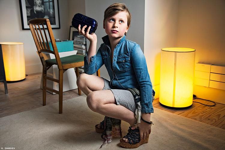 I first started doing drag when I was 2 years old. I took my mom's towel and made a headdress out of it. Then I wrapped bubble wrap around me and put on high heels and stomped around the house in them. My mom saw me and didn't mind. When I was 5, I knew I was gay. I started getting crushes on boys, and then when I was 9, I came out to my mom, and she accepted it. Both of my parents were very supportive. I still don't really tell everyone at school about it -- I'd just rather not. If someone stares at me, I just roll my eyes at them, which means they should mind their own beeswax. What if I stared at them? They wouldn't like that.