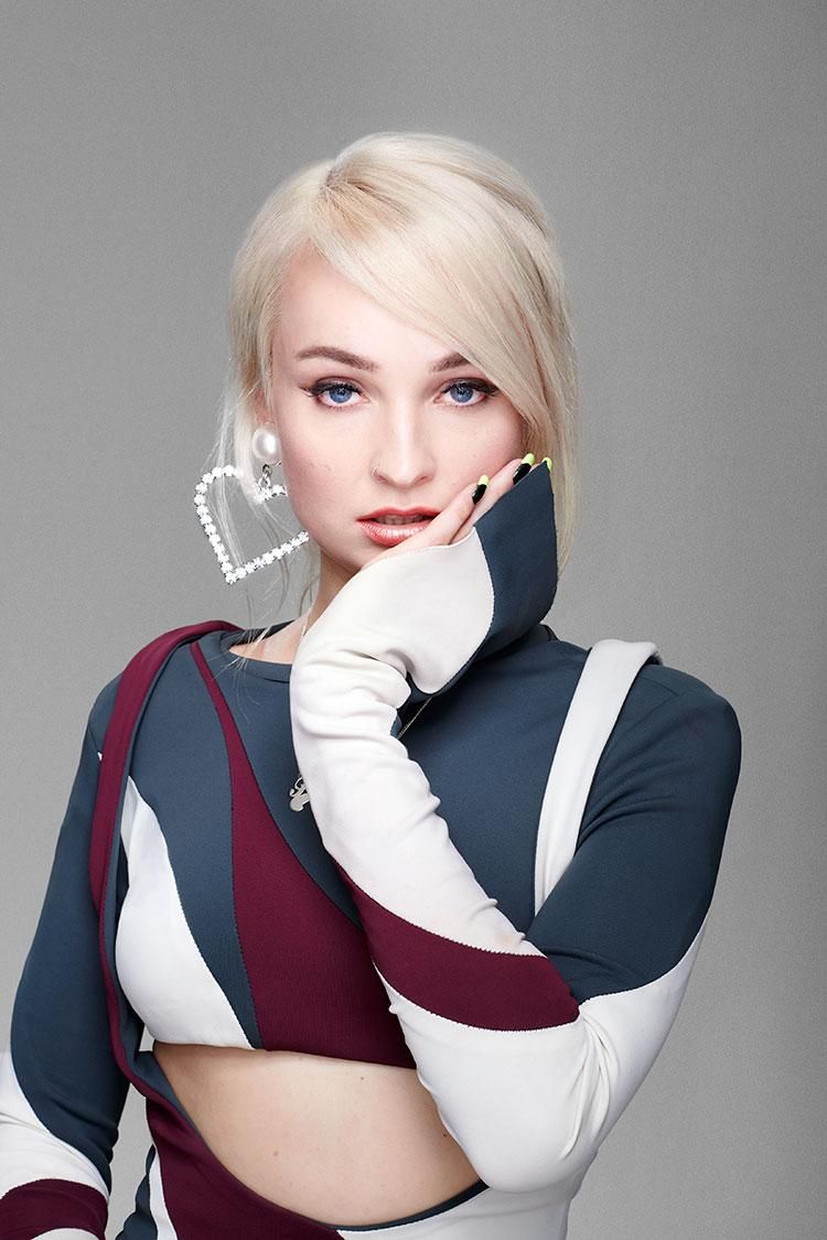 "I'm really into the fantasy," adds the 26-year-old, who grew up idolizing pop stars with outrageous stage personas, from Boy George to Gwen Stefani. Petras's first single landed at a time when pop was still having its stripped-back moment (in the middle of Gaga's Joanne era), and she was eager to bring back a little Top 40 irreverence. "Everybody is so cool right now," she says. "Nobody's singing high songs, everybody's whispering -- it's just a lot of really mellow pop. There's a minimalist thing that's happening right now." Petras, however, is a maximalist. "What I want to do is just the fantasy -- it's so cool to have fun and be flamboyant and dance and sing really loud at the top of your lungs. I just think that's the shit."