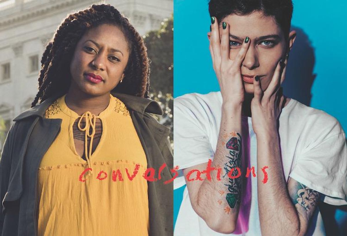 AG: Absolutely. The thing I've really been grappling with for a few years now is do I want to save America, given its incredibly violent, racist, homophobic, and sexist history? And I guess what I'm coming to right now, without getting into a lot of details around the validity of nation states, is that what I want to fight for is a different kind of "we," and a different way that "we" can be. So, one of the questions I get asked a lot is, "Where do white people fit into that, and especially white cisgender straight folk?" And, two, "Is it possible to have a 'we' that includes all of us?" And where I'm landing is that I have to believe it's possible, or else it's hard for me to see a future. I don't see a future where any of us can sit out or get left behind, and then think that we're going to achieve some kind of victory. We talk about that a lot when we talk about how none of us are free until all of us are free. I've really been grappling with the question of where white folks fit in. And how much of our energy do we spend trying to "convert" people who are following this maniac? And what about those people who aren't following this maniac, but they're certainly still a part of the problem? And where I'm landing is: I think this version of America is good for no one, including white, cisgender straight people. Because if we're able to zoom out a little bit, we can talk about the ways in which America as a country functions as a predator -- meaning that the engine of America preys on everyone, and it is only selective in the type of bloodsucking that it does. And I'm curious: How do we get to that "we" that helps us understand that we're all connected? What do you think it would take to get there?