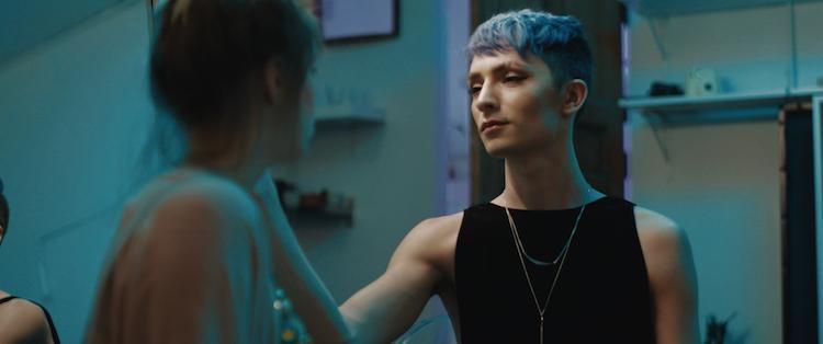 DE: I think what we see now too-- or at least what I'm seeing-- is that these idyllic spaces can create a rift because you have communities that feel like they're not accepted there because they don't fit into the mold of bold and brash and wanting to be a little bit dangerous. Maybe they just want to go dance with shirtless guys all night or whatever it is, which is fine. There are so many ways to be queer, there are so many ways for that to be part of your truth. I understand that not every queer person is going to want to go out nightclubbing. I think that's part of what we're exploring in the film too, the nuances that happen and these rifts between community members. You have the heteronormative gay man, embodied by Luke, and the more queer, genderfluid person, embodied by Zion, and they don't always mix well. You see that at these clubs, you see it at certain queer parties even now, where sometimes it feels like those two communities are coming together and actually clashing in this space that is supposed to be a space for everybody. It comes out of a fear of not being accepted, from both sides. I think that's something we all wish we could deal with more and talk about more and get past so we can all just have fun together.