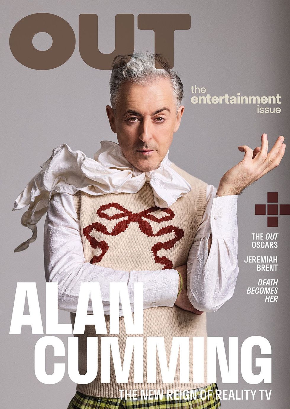 Cumming still feels the same joie de vivre as he did as a young man. But he also grew up in challenging times for a bisexual boy from Scotland. He’s written about his abusive father before in his 2014 memoir Not My Father’s Son. And during this interview, he acknowledges the “big shadow” of the AIDS crisis during his coming of age in drama school, which made him “terrified of sex.” What would he tell his younger self if he could? “It’s gonna be OK. Ultimately, you’re gonna find yourself, and just don’t rush things because there’s lots to unpeel, and there’s lots to discover. Eventually, you’ll come into your own.”