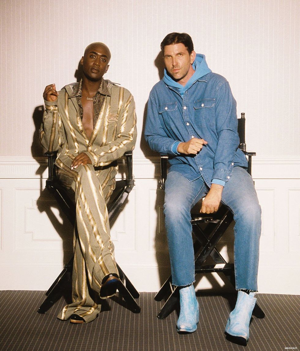Vincint (left) - ETRO Full Look; PSKAUFMAN Shoes // Fabian (right) - LEVI’S Shirt and Pants; DUVIN Hoodie; PSKAUFMAN Shoes