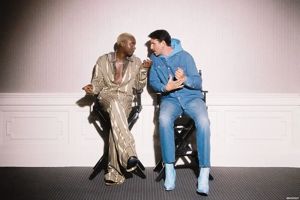 Fabian (left) - GOBI Cashmere Sweater; LEVI’S Pants; PSKAUFMAN Shoes // Vincint (right) - TANNER FLETCHER Suit; PSKAUFMAN Shoes