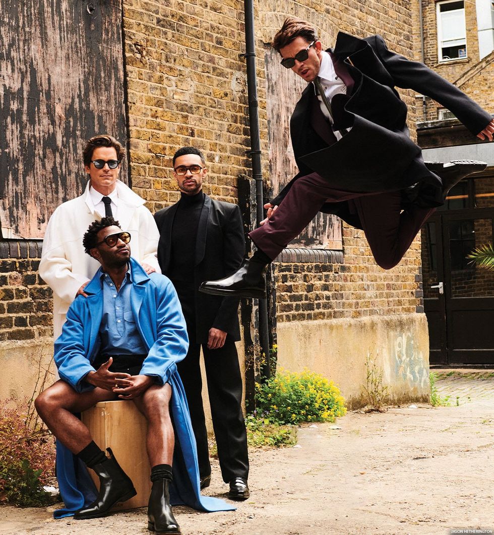 Cover Image Credits: Jonathan - MAXIME Suit; EDWARD SEXTON Shirt; MANOLO BLAHNIK Shoes; THE LONDON SOCK CO. Socks; SCOTCH AND SODA Sunglasses; JONATHAN’S OWN Necklace // Noah - GIVENCHY Vest; SIMONE ROCHA Pants; MAXIME Shoes; ROCKINS Scarf // Jelani - TORON Shirt and Pants; MALONE SOULIERS Shoes; A SINNER IN PEARLS Necklace // Matt - KING AND TUCKFIELD Knit and Pants; HERMES Shoes