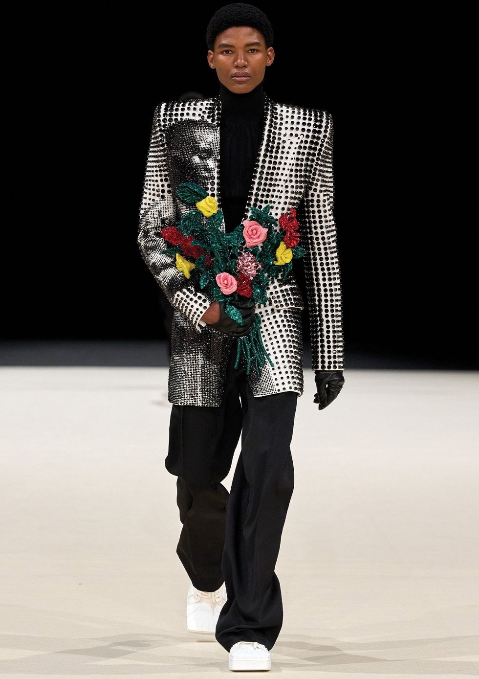 Bead it, stud it, make it tight, and you better make sure it sparkles! At least those were the rules with many of the looks at Dior, Balmain, and Emporio Armani — just to name a few. Dior Men’s Kim Jones sent down a myriad of pearl-drop, sequin-embellished mesh that will definitely send the boys (like me, at least) in a tizzy. Entire suits and shirts were made of shimmering crystals, beads, and studs at Balmain and Louis Vuitton — the former echoing the future and the latter echoing the past.