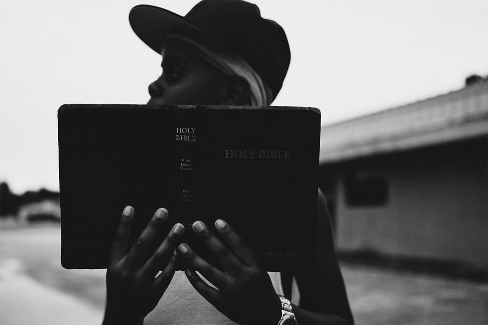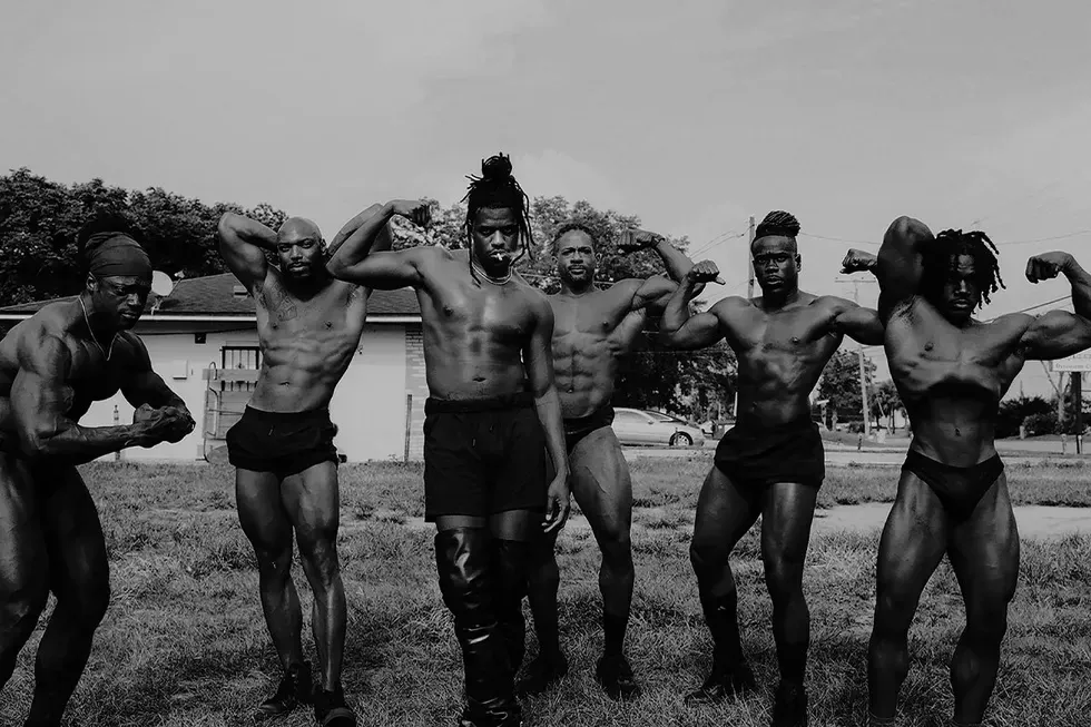 In December, Pope revealed this secret weapon at the SCOPE Art Show in Miami Beach through a photography exhibition, “FLEX(bitch),” which explored depictions of masculinity through different stages of life. The artist, a Florida native, had gathered family members for the event at the SCOPE Art Show, including his father, a professional bodybuilder and pastor, whose influence can clearly be seen in the works. In the photojournalism series, there’s a portrait of a boy with a Bible; a lineup of toned male physiques, including his own; and portraiture of himself in drag alongside RuPaul’s Drag Race winner Symone.