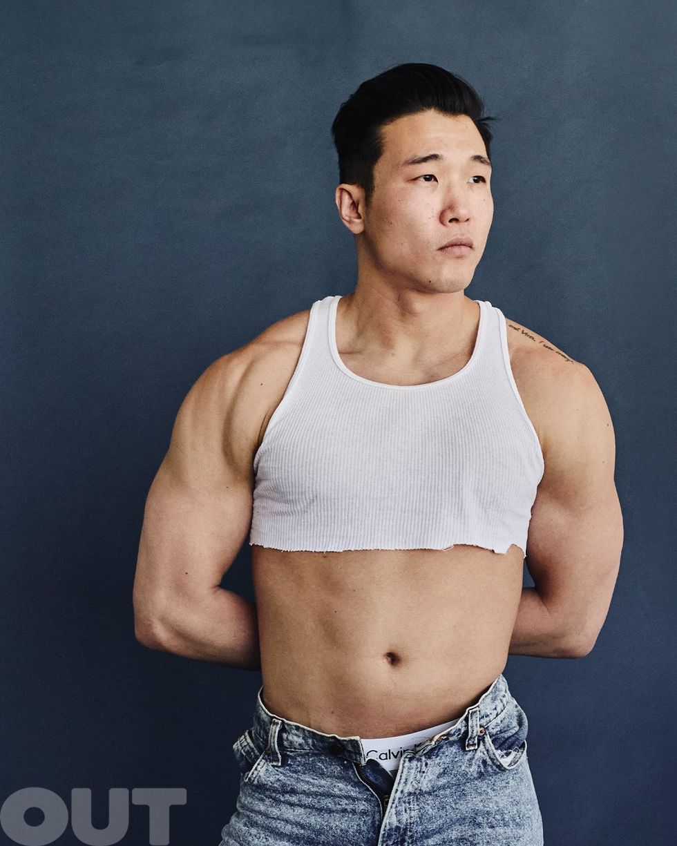 However, Booster also recognizes the issue as “complicated,” particularly when it comes to his intersectional identities and the history of their representations in media. “I want to be an Asian sex symbol. That’s really powerful, and that’s a really powerful thing for Asian men, especially, to see. To see an Asian man who’s confident sexually and in his body and wants to move in the world owning that,” he says. “I think Asian men don’t get to do that a lot, and we don’t get to be sex symbols a lot. So it’s weirdly important and powerful for me when I look through that lens, and also very regressive almost when I look at it through a queer lens. I feel very conflicted about it at all times. Always.”
