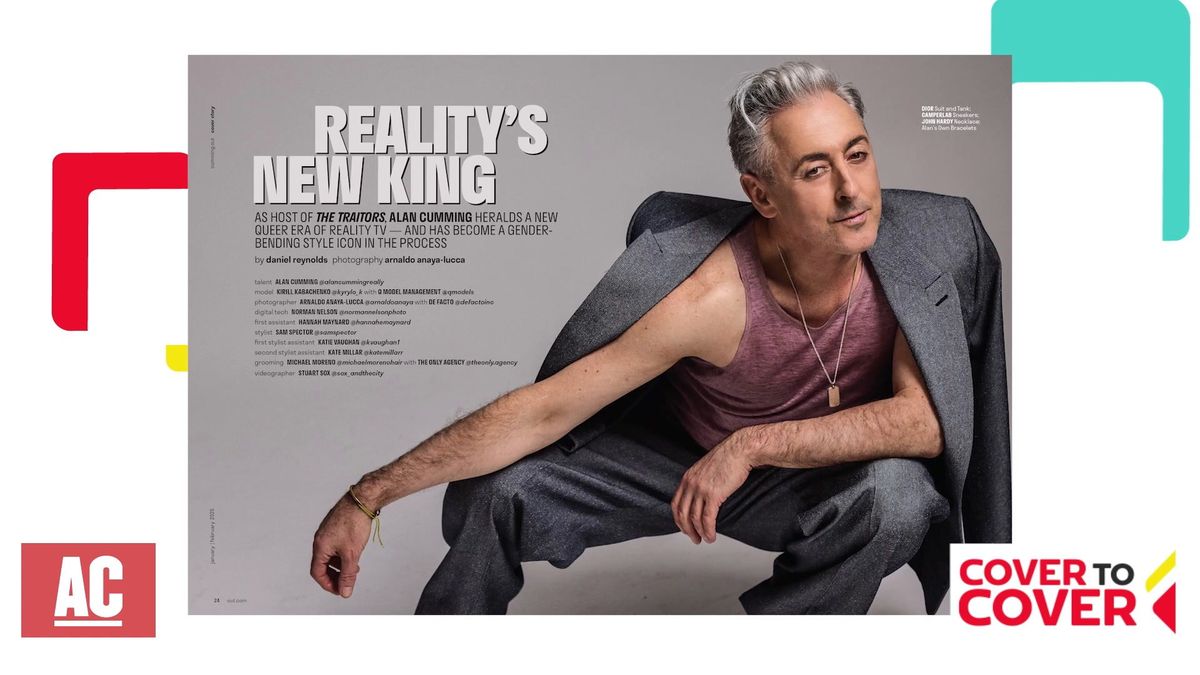 This is the Entertainment Issue. And in this sphere, Out’s editors could think of no better cover star holding space than Alan Cumming, a veteran actor of stage and screen who has long used his platform to uplift others. Cumming is doing just that as the host of The Traitors, the hit Peacock reality competition that has changed the game and queered the genre. Cummings’s presentation — his clothes — challenge the gender binary in ways that go “against the political flow,” the Tony-winning Cabaret star told me in our interview.