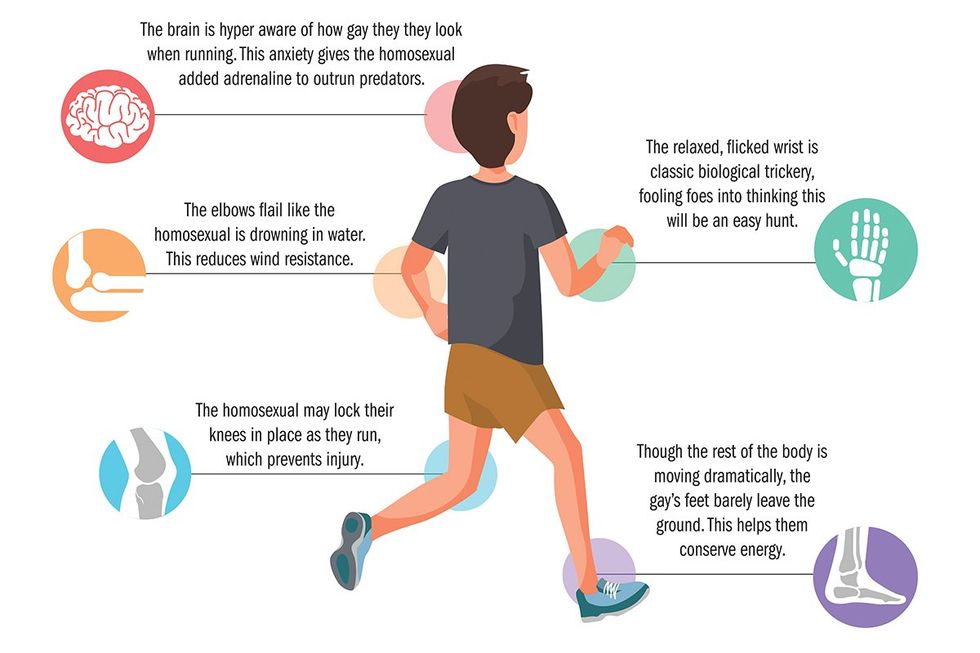 The book pokes fun at queer behavior without making queer people the punchline. We can laugh at ourselves while still feeling good about who we are. Being closeted isn’t a weakness, but instead a defensive strategy. The “gay run” looks awkward but there’s a biological reason for it. We’re the evolved ones here! Within this humor, there’s some serious topics being addressed. For example, the “gay isolation” required at vacation spots is due to protection from societal stigma. Or there’s the reality of higher rates of drug and alcohol consumption among queer people.