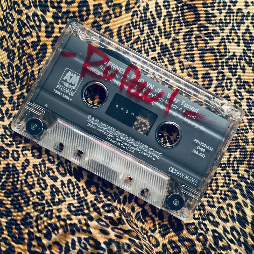 You hear music faintly in the background not because we were recording in a bustling record label office, but because in my rush to get to the interview, I’d grabbed a random promo cassette tape, and like the true professional that I was, recorded over it. (Sorry, Vernel Brown!)