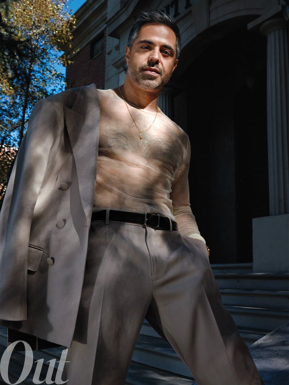 This interview is part of Out's March/April fashion spread, in which out actors Joel Kim Booster, Daniel Kyri, Mark Indelicato, and Satya Bhabha talked TV and modeled menswear on the Universal Studios Lot’s Courthouse Square.