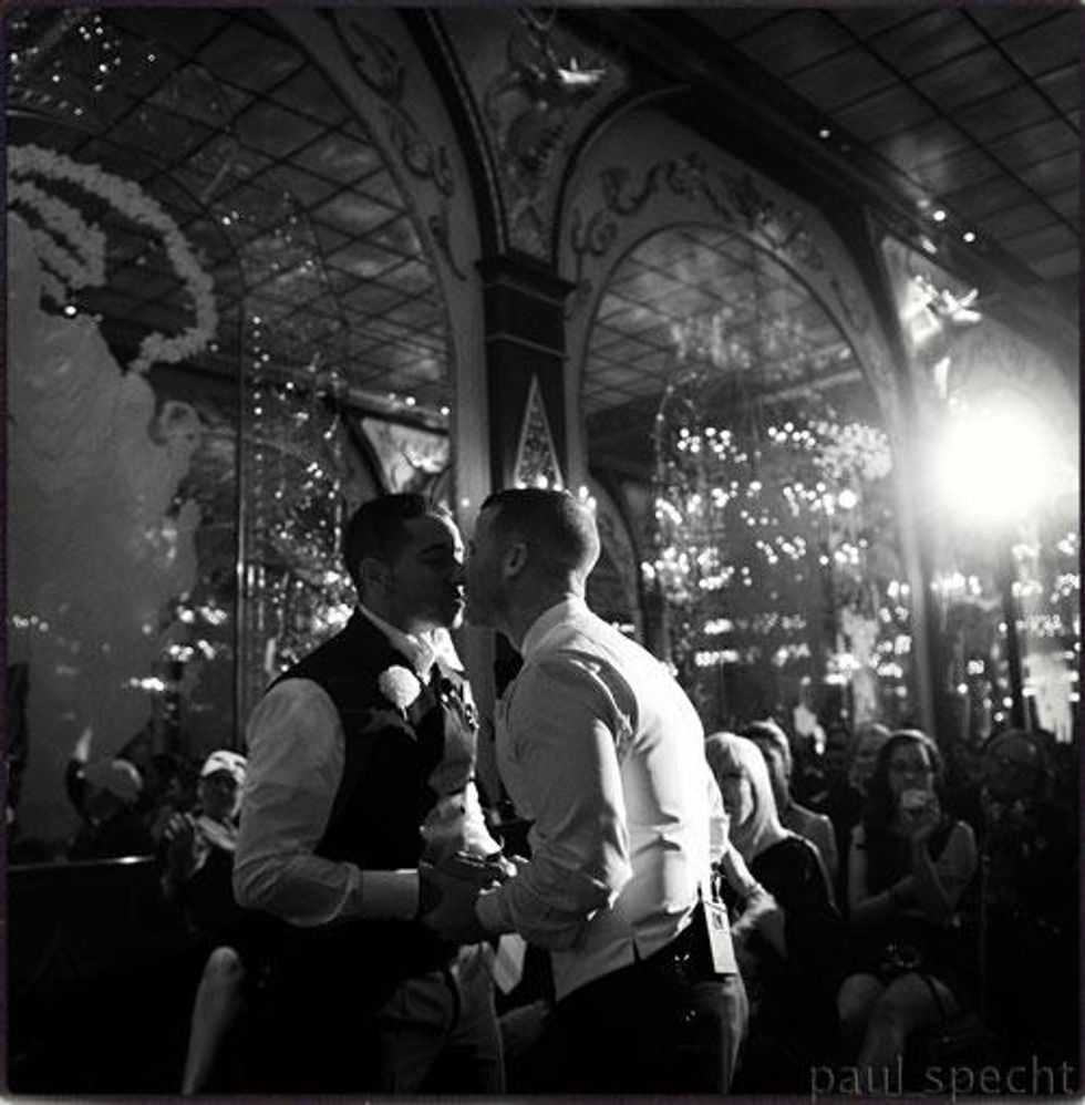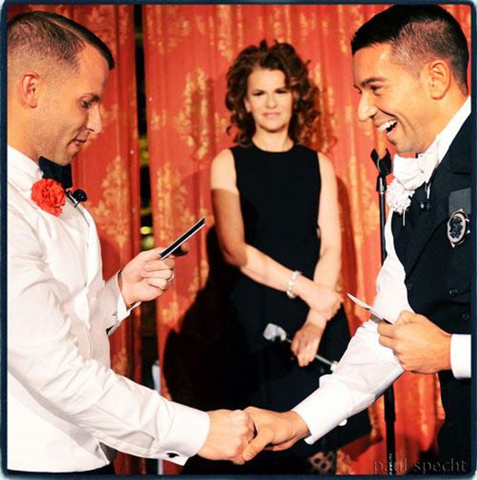 Actress Sandra Bernhard led the ceremony for Bradford Shellhammer & Georgi Balinov at the Russian Tea Room in New York.