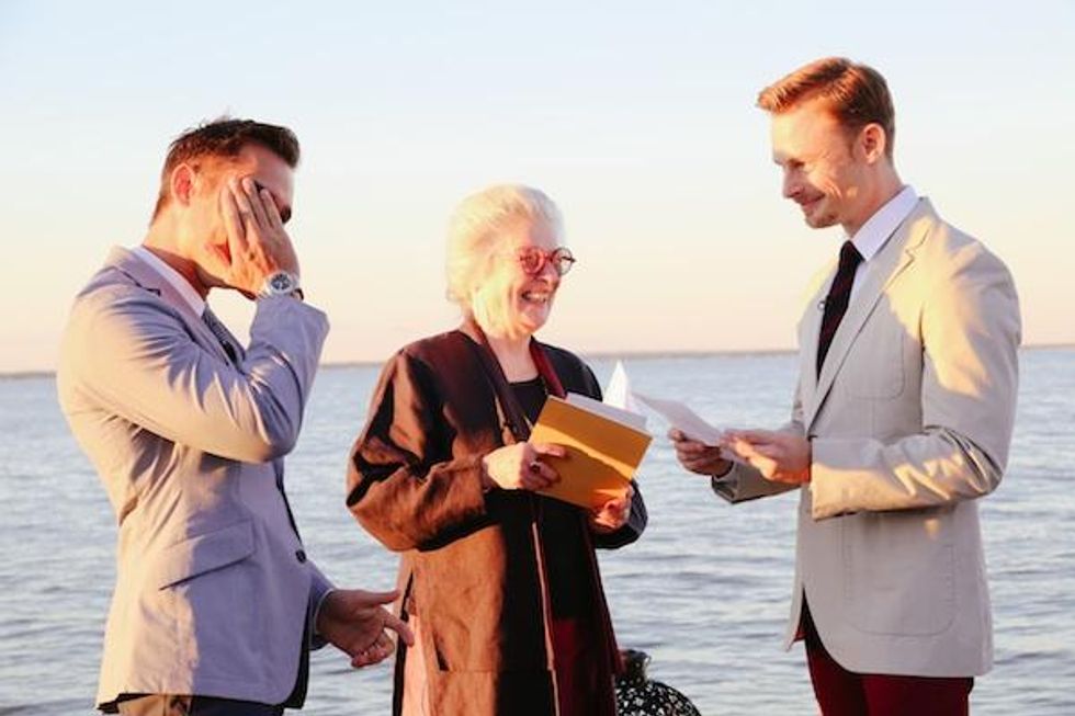 Christopher Wheeldon (left) and Ross Rayburn were married September 28, 2013 on a beach at the Pines in Fire Island. The intimate affair was attended by close friends and family.
