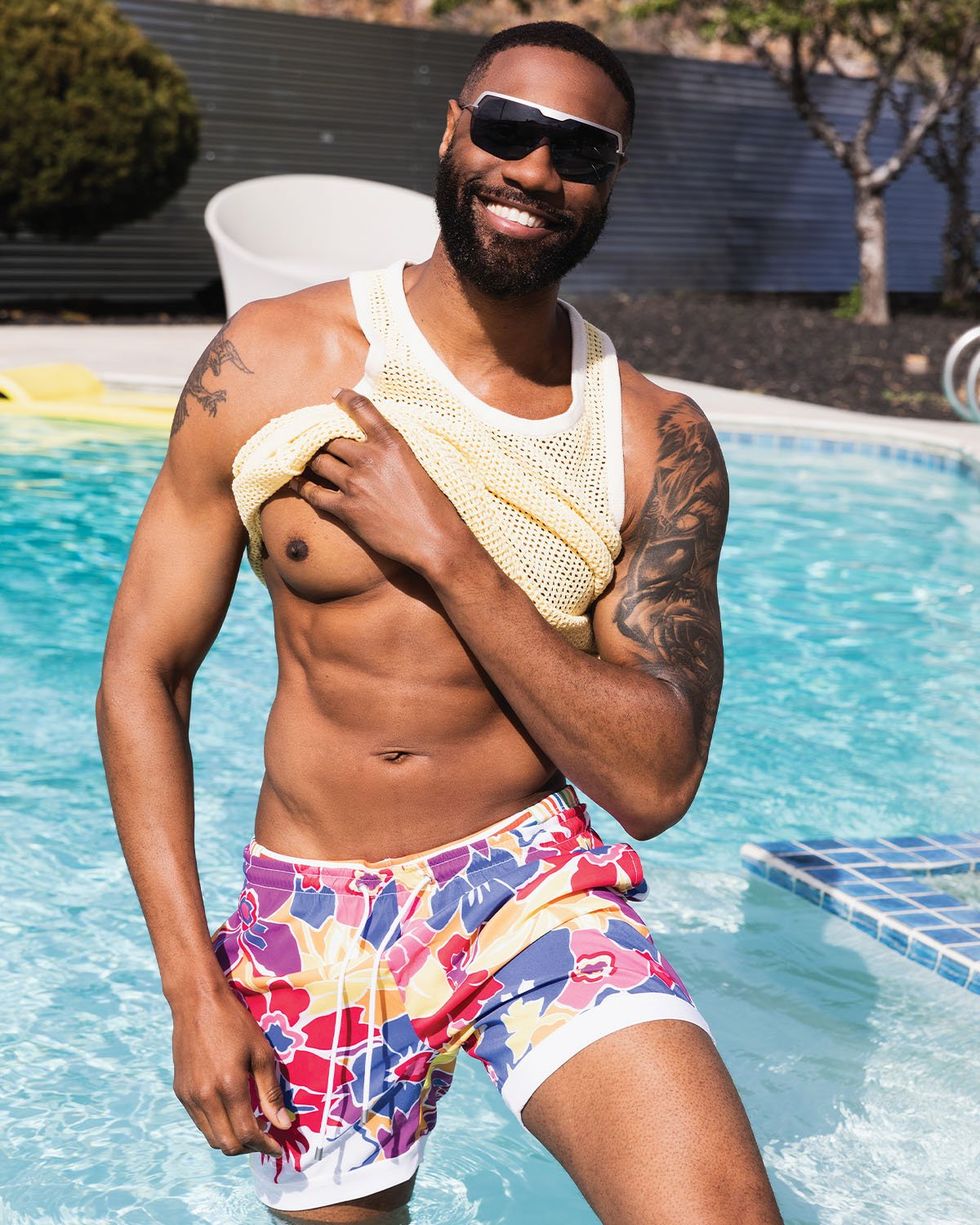 James: Typically trunks, but I’m stepping into my soft top era and so Speedos! I used to be really self-conscious about my legs. I’m 6’6” and most of that is legs. I got a really high booty, but, yeah, I’m starting to try the Speedos out and I think I’m liking what they’re giving.