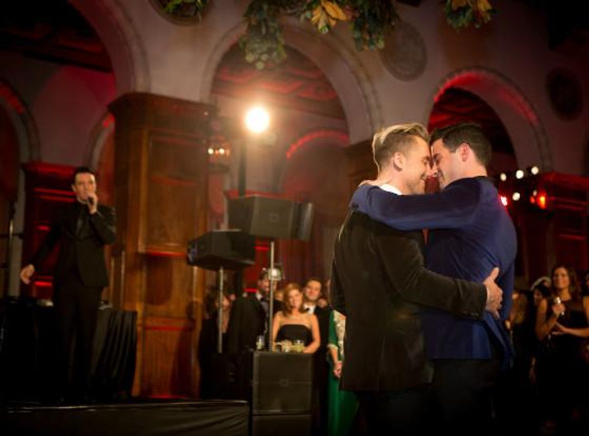 It's true that televised weddings of rich and famous gays can stick in the craw of those who never did aspire to polite company, let alone those who still find themselves marginalized, but as Bass pointed out in explaining the decision to televise his wedding, "as a little kid from Mississippi, if I would have seen a gay wedding on TV, I would have been, like, 'Oh, well, there's nothing wrong with me. I don't have to pray to God to change me to straight." That, too, sticks in the craw of those who find their once-reliable specters of brimstone and fire no longer have the same effect. Television has seen to that.