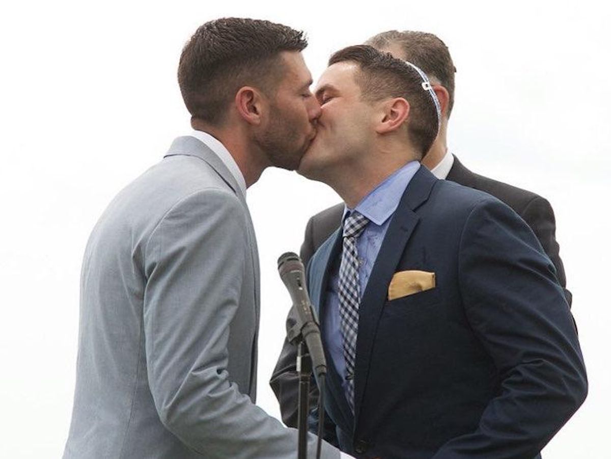 After the video was released, the men invited Clinton to attend over Twitter. Staff replied to the two immediately, but she declined the invite, saying her presence would take the focus off their ceremony and would turn it into a media feeding frenzy. Instead, the presidential candidate sent them a warm, congratulatory note.