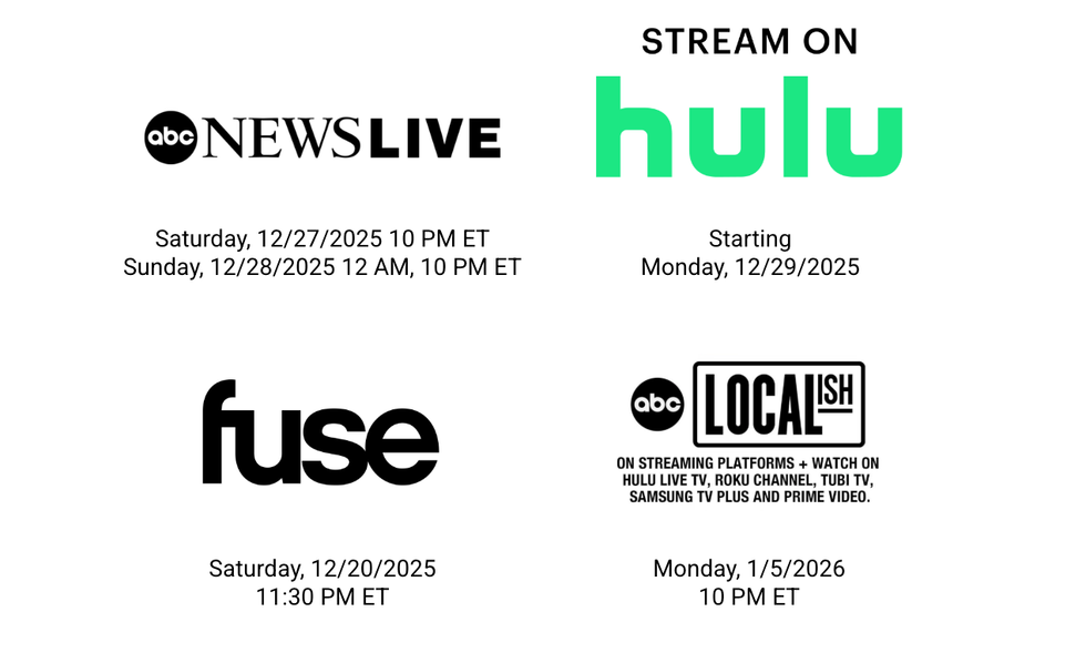 | New York | WABC-TV | Saturday 1/10/2026 7-8pm EST |