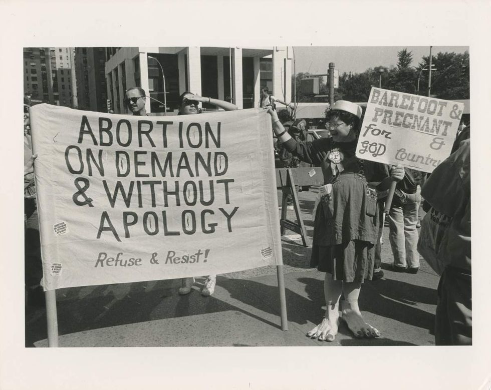 The collection, Arresting Images presented by Fugitive Materials, includes over 150 images by photographer, queer social documentarian, and street activist Dona Ann McAdams. The photos give us a rare, up-close view of queer liberation uprisings, ACT UP protests, pro-choice activism, and other elements of everyday queer and feminist life during this period in NYC.