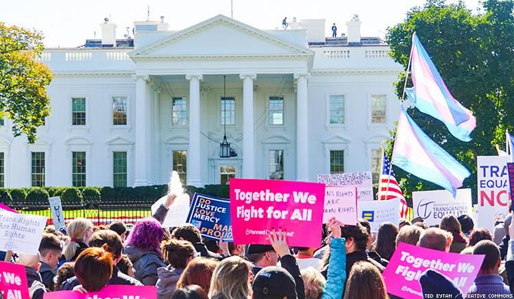 Protesters outside the White House on October 22, 2018 at the 'We Won't Be Erased - Rally for Trans Rights,' in Washington, D.C.