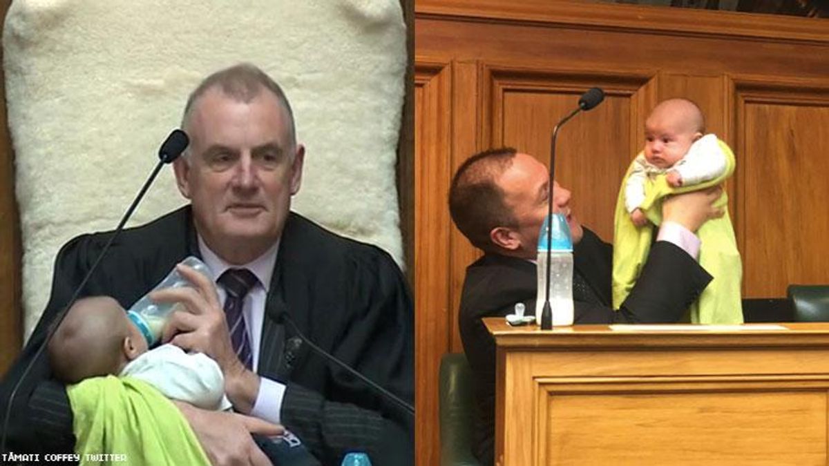 On the adorable quotient, Coffey's fellow parliamentarians were more than happy to oblige. A photo of House Speaker Trevor Mallard bottle-feeding Coffey's son while he was wrapped in his blanket went viral. Mallard tweeted the precious moment and added, "Normally the speaker's chair is only used by presiding officers, but today a VIP took the chair with me."