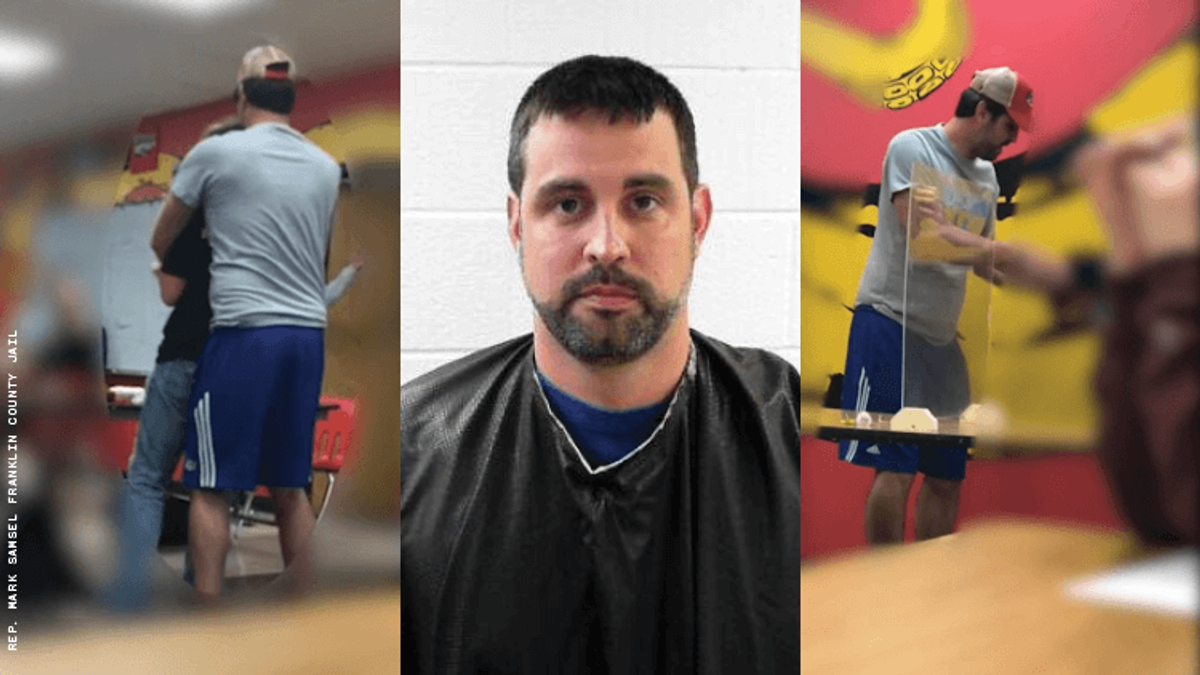 A Republican state lawmaker in Kansas was arrested and charged with misdemeanor battery charges for kneeing the groin of a teenaged boy who was in a class he was teaching. According to a report in the Kansas City Star, Republican Representative Mark Samsel, 35, was caught on a series of videos recorded by students engaging in a series of unsettling, sometimes homophobic rants that touched on everything from masturbation and testicular assault to teen death by suicide and the wrath of God. The videos came to the attention of police and district officials after they were posted to various social media by students. Samsel had worked as a substitute teacher for the Wellsville School District, but was terminated not long after the videos surfaced.