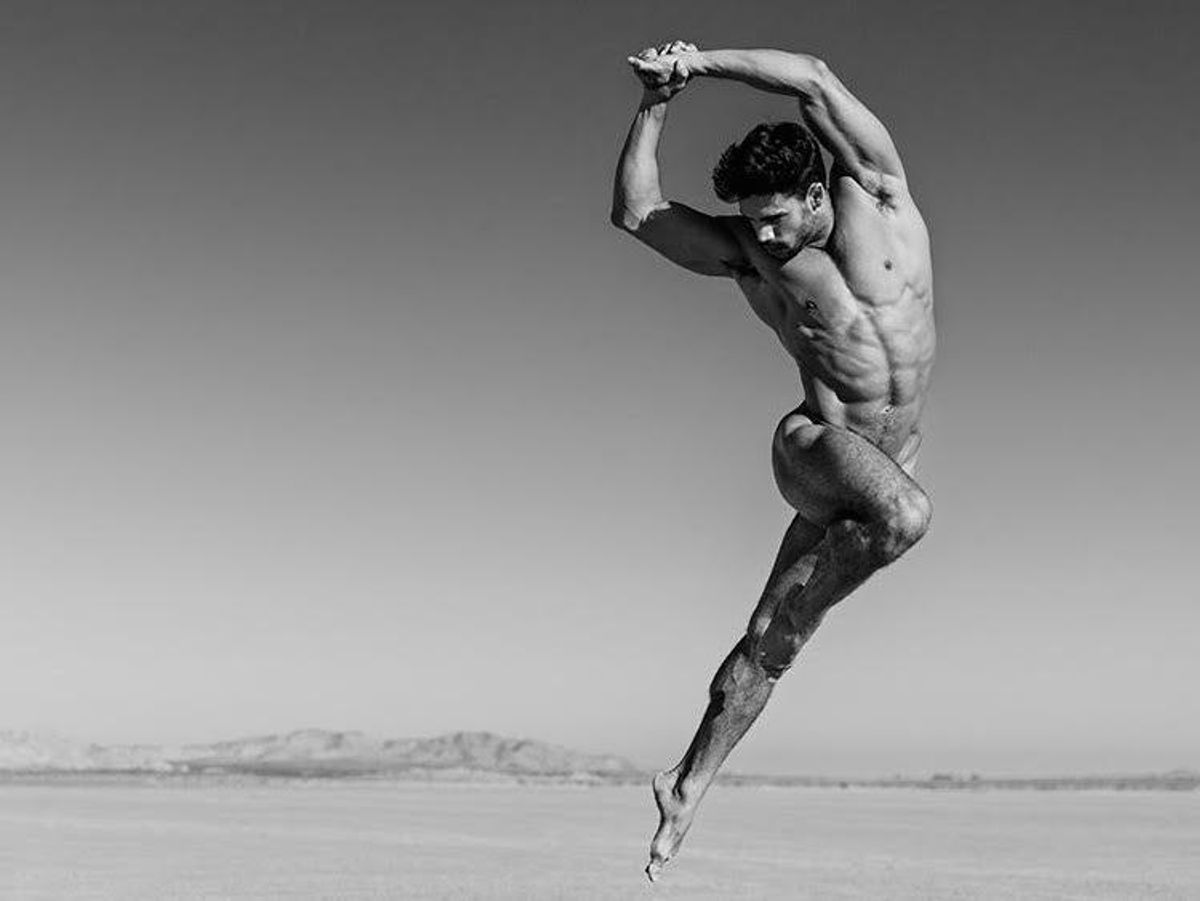 "I thought this setting would be a great open stage to highlight his talent of moving that incredible body," McDermott explains. "So on his weekend off, we drove to California and shot late in the day and at dawn in two different locations, El Mirage and Death Valley (which lived up to name-it was incredibly hot). We got down to work and worked really well together trying different things: jumps, poses, portraits. Its funny, but when you're working like that, you sort of forget that he's naked."