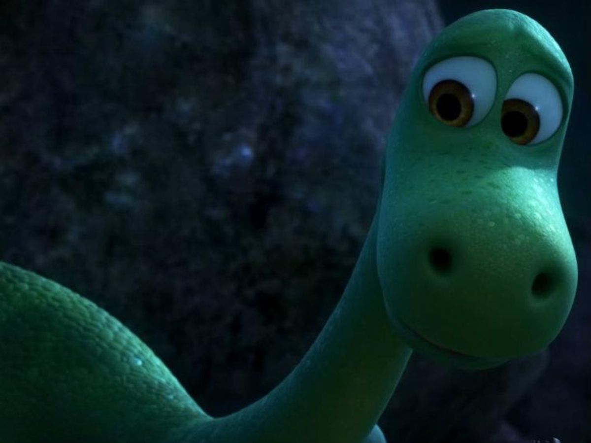 Now that we're over that, we get a glimpse at the storyline of Disney Pixar's prehistoric film, The Good Dinosaur. Set in a world where the asteroid that caused the dinosaur's extinction avoided Earth, and dinosaurs and mammals evolved alongside one another, The Good Dinosaur explores the familiar "lost my way" trope through a new lens.